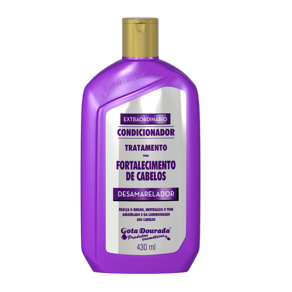 Condicionador Fortalecimento Desamarelador Gota Dourada 430 ml é a solução perfeita para quem deseja neutralizar o amarelado dos fios, realçar o tom platinado e hidratar profundamente. Sua fórmula exclusiva, enriquecida com ativos poderosos, combate a queda por quebra dos fios e fortalece a raiz e estrutura capilar. Indicado especialmente para cabelos loiros, com mechas ou grisalhos, esse condicionador proporciona brilho excepcional e mantém os cabelos saudáveis e radiantes.