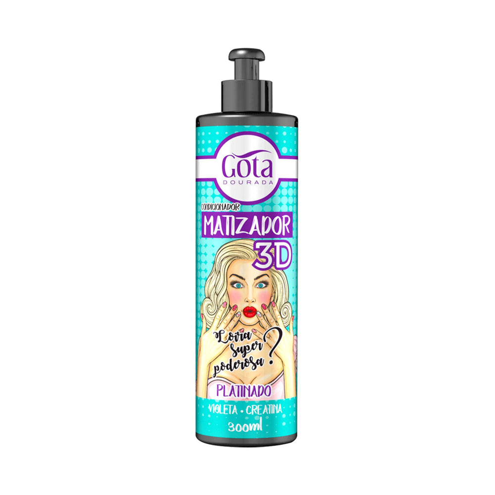 O Matizador Condicionador 3D Platinado Gota Dourada 300 ml é ideal para quem busca um efeito super platinado, com brilho intenso e sem os indesejáveis tons amarelados nos fios. Desenvolvido com violeta e creatina, ele regenera a fibra capilar, evita a quebra e fortalece os cabelos, proporcionando um visual deslumbrante.